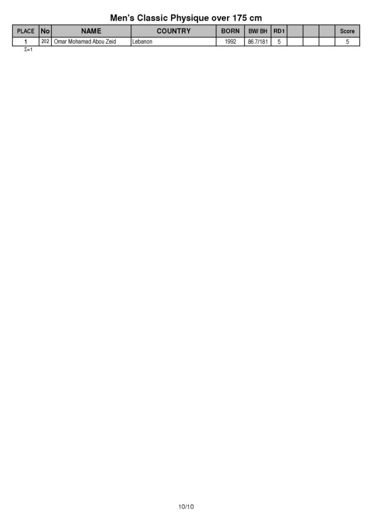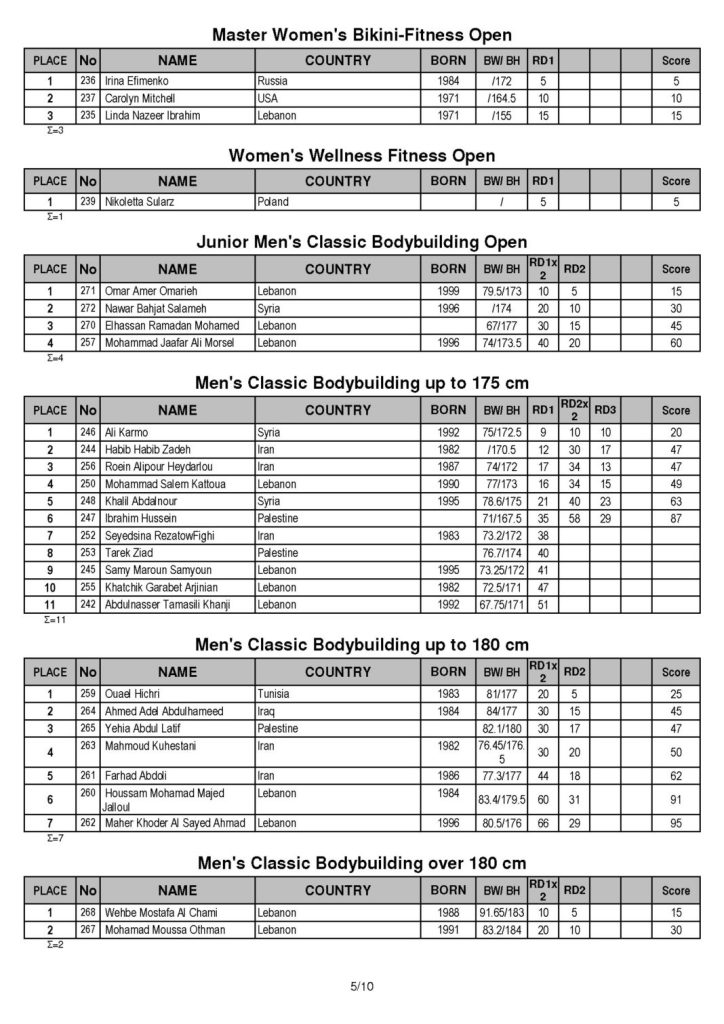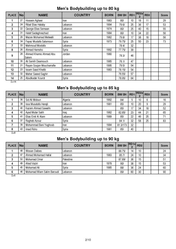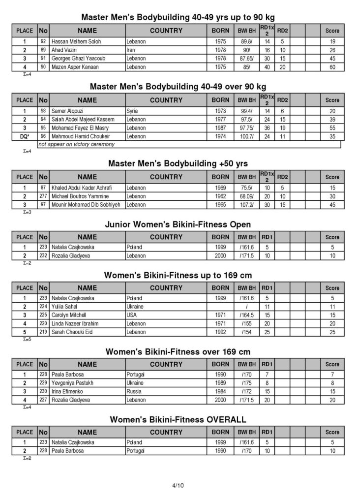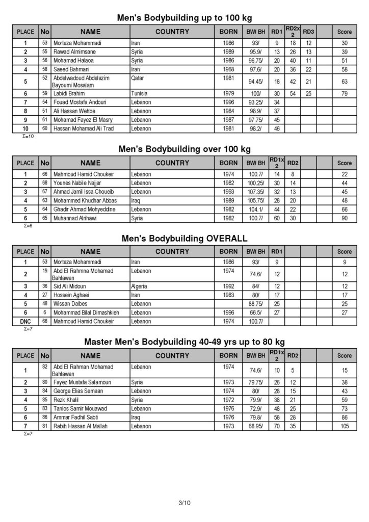 Here are the results. In case any of you are not familiar with the IFBB and the event that took place in Lebanon, check out this article as it explains the event quite well.