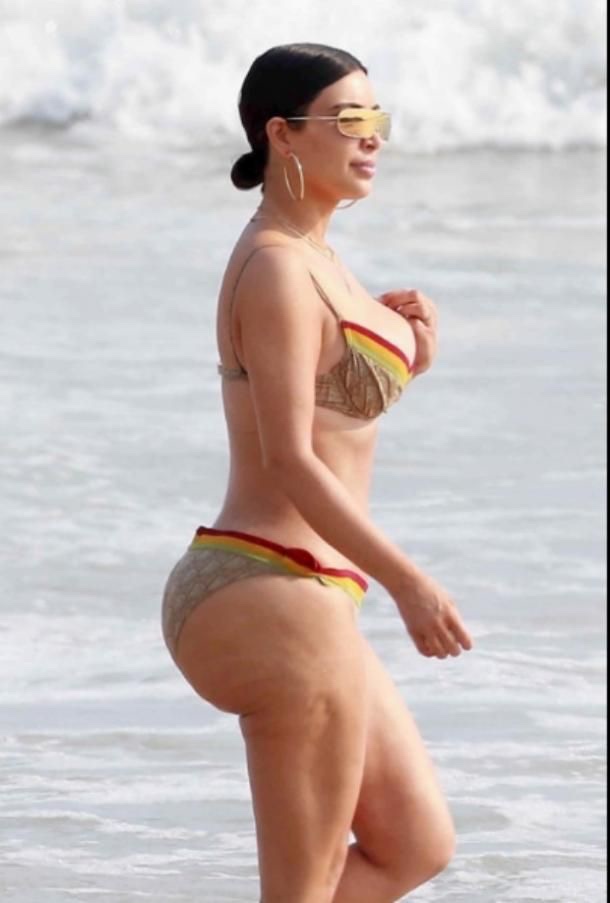 Kim Kardashian’s body is highly manipulated with cosmetic surgery, her legs are thinner than her hips and her buttocks have been filled with fat via surgery.