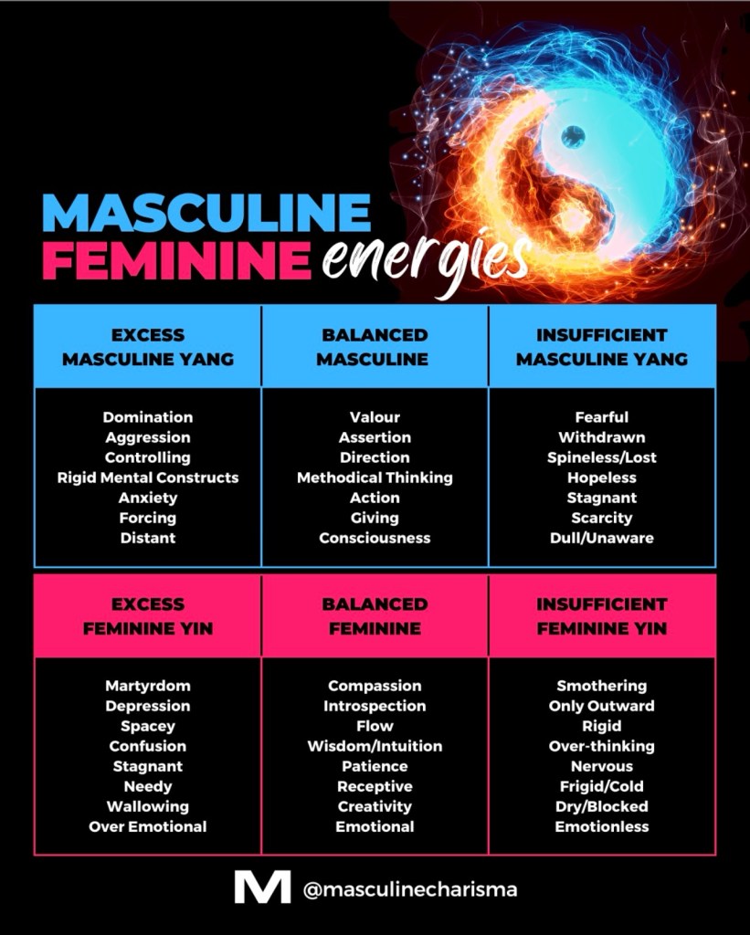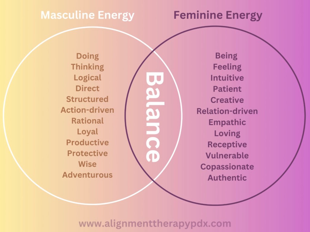 Let us start by defining what feminine and masculine energies are. The masculine energy is built on structure, action, direction and intensity.